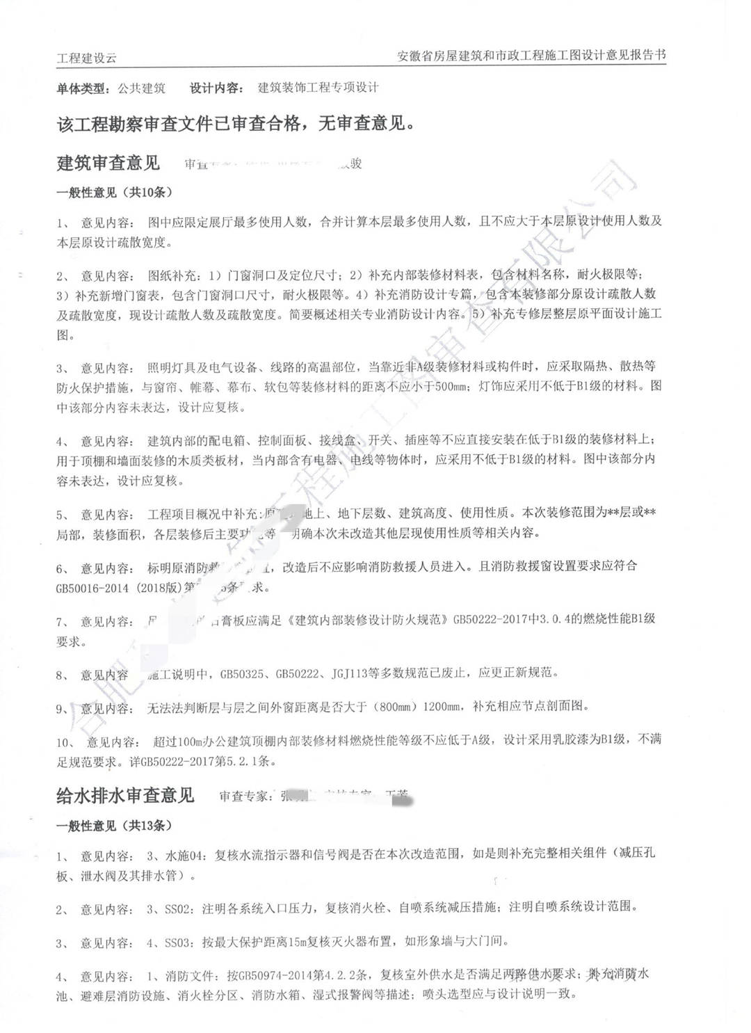淮北市展厅施工图审查意见书